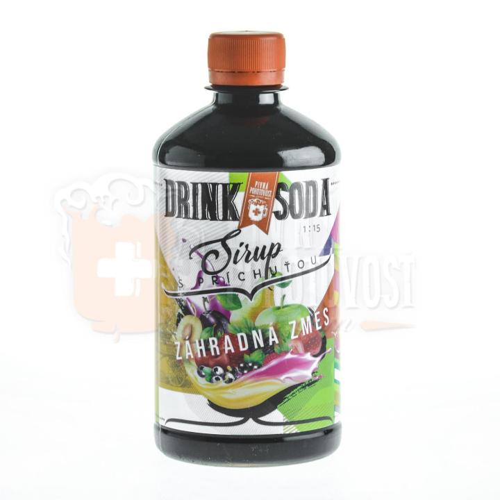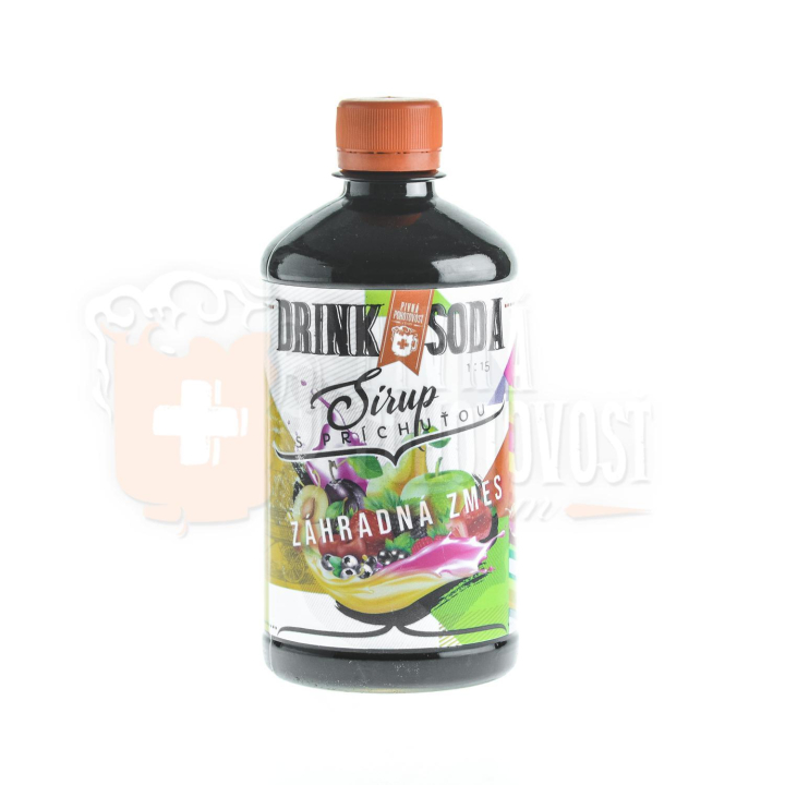 Sirup s príchuťou záhradná zmes 1:15 z 0,5 l sa vyrobí 8 l nápoja .