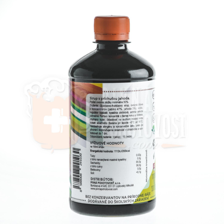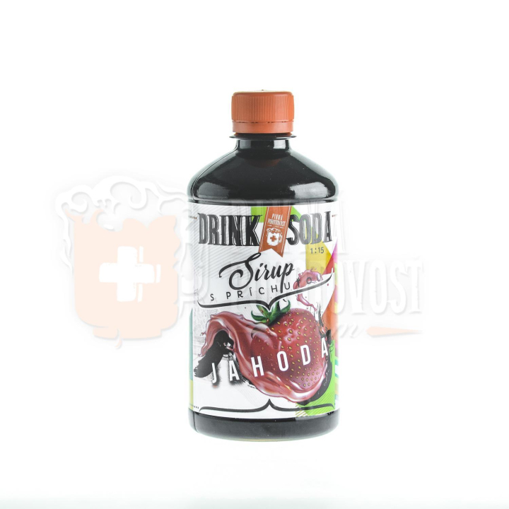 Sirup s príchuťou Jahoda 1:15 z 0,5 l sa vyrobí 8 l nápoja .