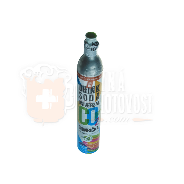 Univerzálna tlaková fľaša (bombička) s obsahom CO2 sa používa do výrobníkov sódy.Bombička je vyrobená v súlade so všetkými smernicami EU a spĺňa všetky požiadavky smerníc EU na používanie, údržbu, opravu, testovanie a opätovné plnenie. Opätovné plnenie bombičky CO2, pre zachovanie zákonom stanovenej záručnej doby vykonávajte výhradne vo vybraných plniacich strediskách určených firmou PIVNÁ POHOTOVOSŤ, s.r.o.