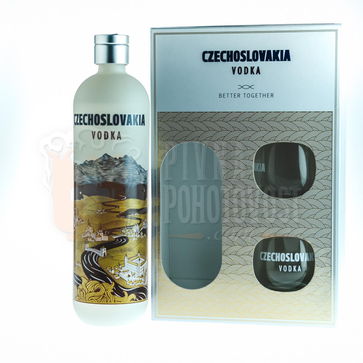 Czechoslovakia Vodka darčekový set + 2 poháre v krabičke.