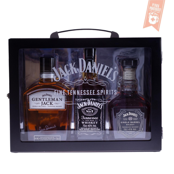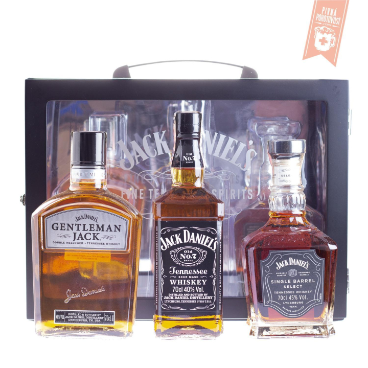 Jack Daniel's, Gentleman Jack, Jack Daniel's Single Barrel v exkluzívnom balení. Skvelá darčeková kolekcia troch členov rodiny Jack Daniel's - fľaša Old No.7, fľaša Gentleman Jack a fľaša Single Barrel - to všetko v krásnom drevenom kufríku. Darček pre každého milovníka rodiny Jack Daniel´s.
