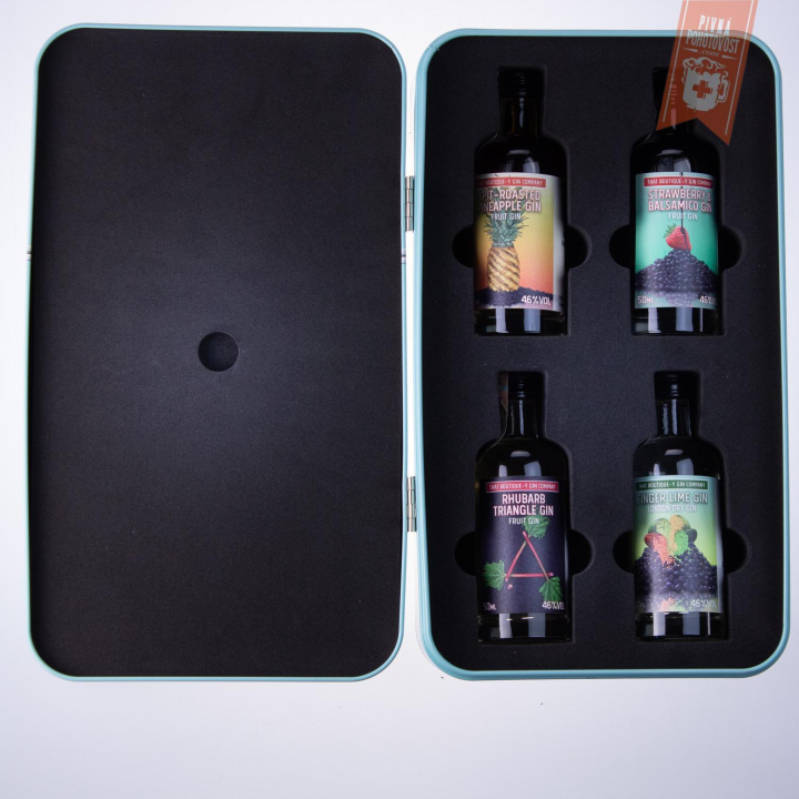 Táto šmrncová retro plechová chladnička je snom každého milovníka ginu. Je naplnená štyrmi 40 ml fľaštičkami chutných a zábavných ginov That Boutique-y. Ananásový Spit-Roasted Pineapple Gin, tak aj ostatné sú vyrábané iba ručne a v malých šaržiach. Zabalené v nádhernom balení, pripravené na darovanie či objavovanie.