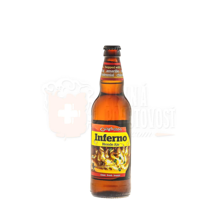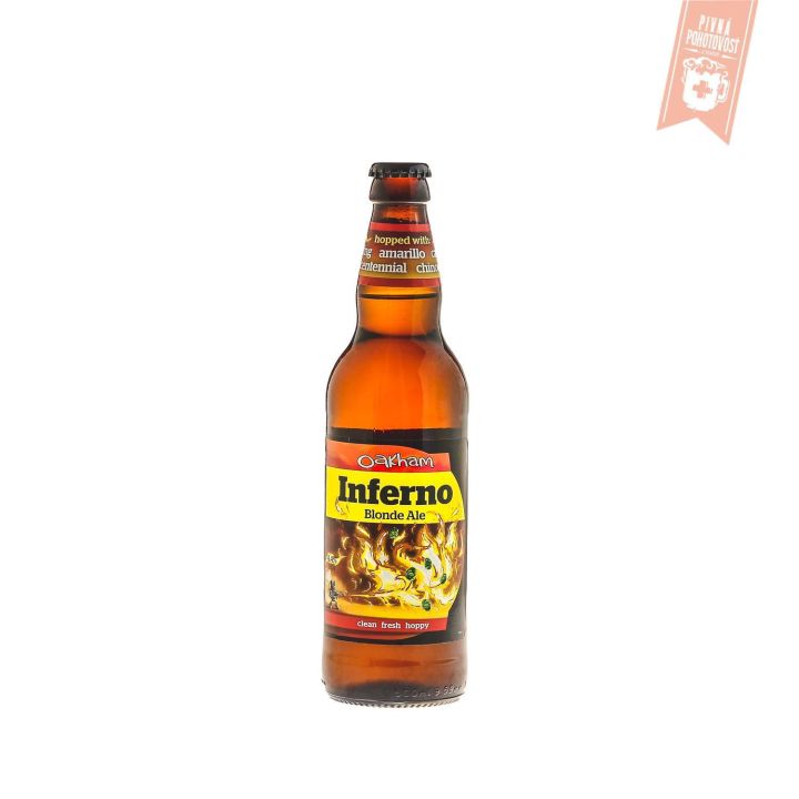 Iskrivá zlatistá farba, ovocná chuť citrusových plodov a kvetinová aróma: to sú základné atribúty piva Oakham Inferno, ktoré dáva tomuto pivu kombinácia piatich odrôd amerických chmeľov. Je to ľahký, podnecujúci Ale, ktorý rozlieva na jazyku komplexné ovocné chute a zanecháva suché, ovocné a horkasté zakončenie.