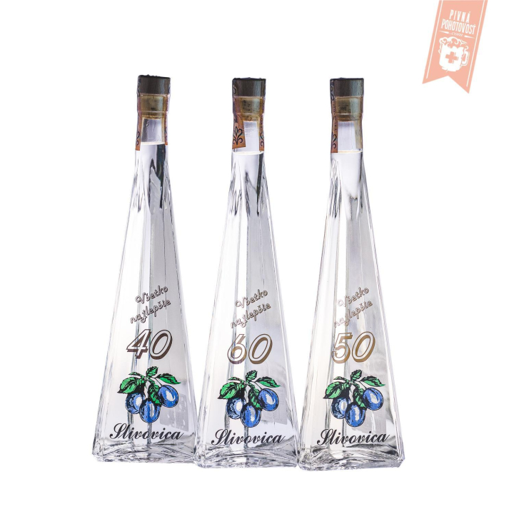 Bošácka Slivovica 52% v darčekovom balení v tvare ihlanu, ktoré je vhodné k dožitému jubileu 50 rokov.
