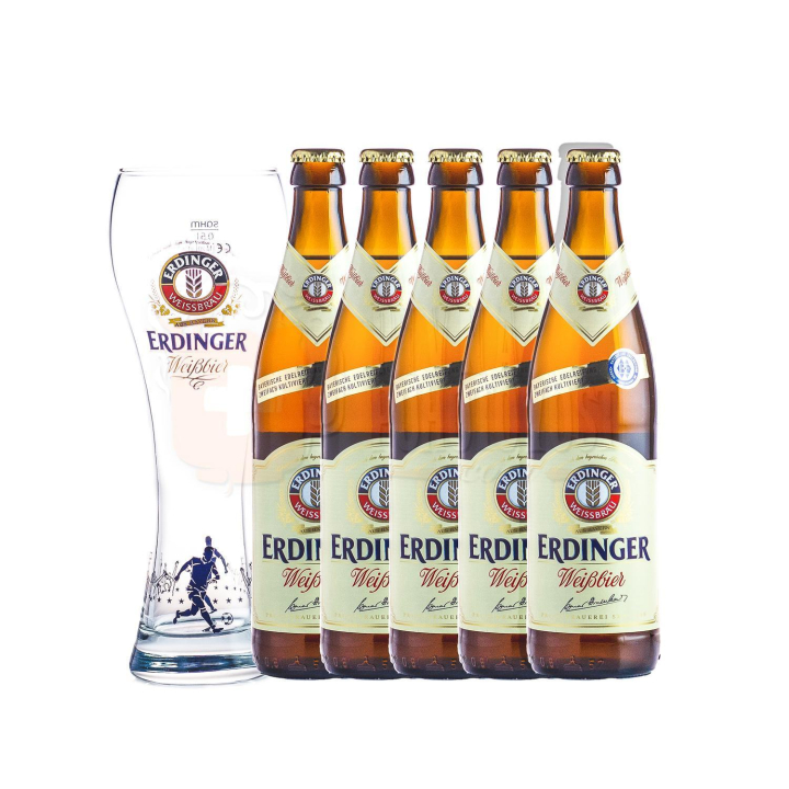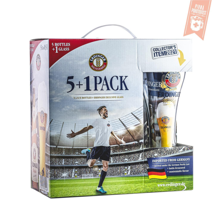 Teraz v darčekovom balení, ktoré obsahuje 5 x ERDINGER Weissbier + štýlový pohár.