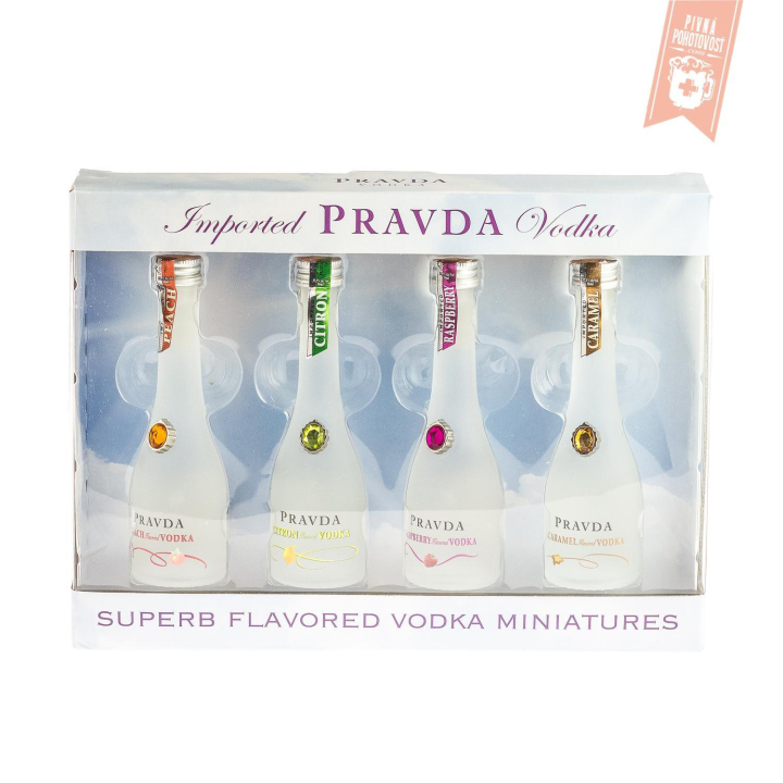 Mini set Pravda Vodka v 4 rôznych príchutiach :