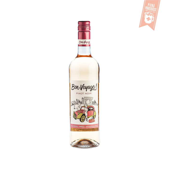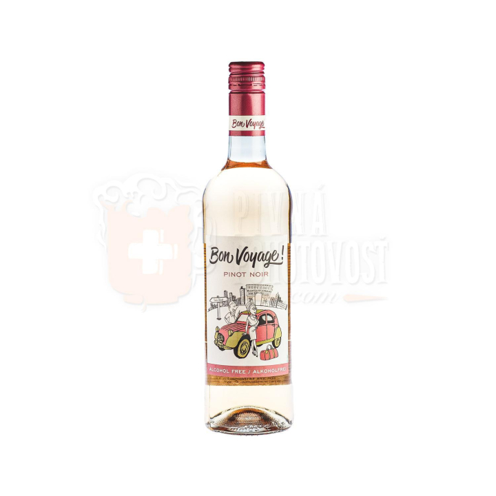 PINOT NOIR Bon Voyage je osviežujúce nealkoholické ružové víno vyrobené z odrody Pinot Noir. Vďaka inovatívnej technológii Spinning Cone Column, ktorá funguje na princípe odstreďovania pri nízkych teplotách, je z vína šetrne odstránený alkohol, pričom si zachováva svoje aromatické a chuťové vlastnosti. Je ideálne pre tých, ktorí chcú vychutnať autentický chuťový profil ružového vína bez alkoholu. Obsah alkoholu je približne 0,5 %.