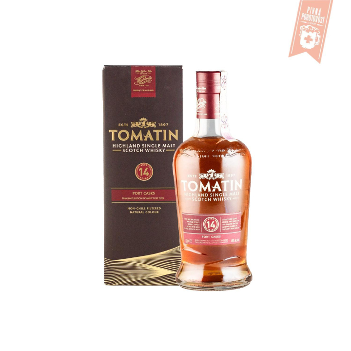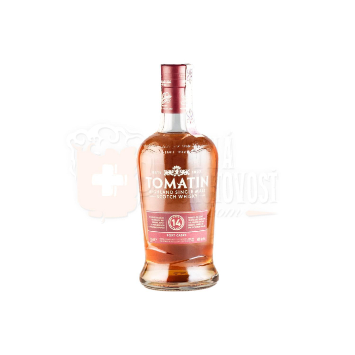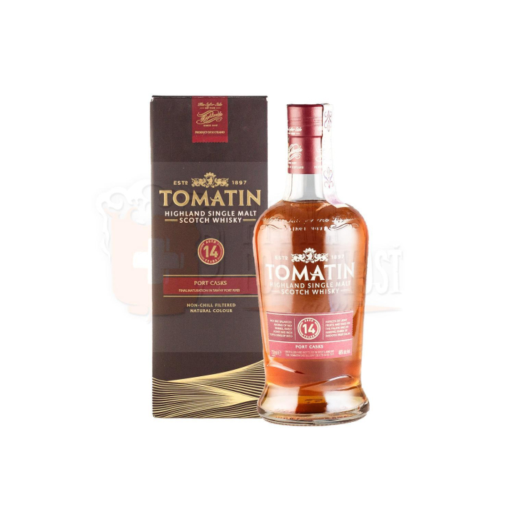 Špeciálna 14-ročná škótska Tomatin 14YO Port Casks 0,7l 46% je jemná a sladká whisky, ktorá čerpá svoju chuť a arómu z času stráveného v sudoch po portskom víne Tawny Port. V týchto sudoch zrie toto víno dlhých 50 rokov, takže spirit tohoto vína je v tejto whisky veľmi silný, sudy sú nasiaknuté jeho vôňou a chuťou. Whisky je robená z oblasti Highland, z vysoko kvalitného obilia.