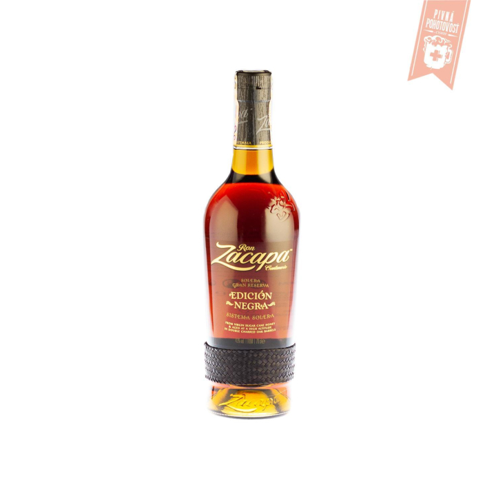 Ron Zacapa Edición Negra 0,7l 43%je zmes 6 až 23 ročných rumov, ktoré zreli v sudoch po bourbone, whisky, sherry a portskom. Od ostatných Zacapa rumov s rovnakou starobou sa táto limitovaná edícia líši väčším zastúpením práve sudov po sherry– tie potom stojí za väčšiu jemnosťou a ľahko odlišnou chuťou, ktorá z nej robí veľmi žiadanú súčasť domácich barov. Zložitá, plná a veľkorysá chuť rumu Zacapa Negra má viskózny charakter a rozvíja sa jemne – od sladkých tónov medu a karamelu k drevitosti dubu, pikantnosti korenia a horúčosti sušeného ovocia. Každý dúšok je trochu iný, všetky ale majú príjemne výrazný finiš, ktorý uspokojí aj najnáročnejšie chuťové bunky.