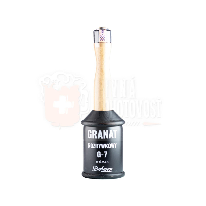 Darčeková vodka Debowa Granát naplno odpáli zábavu na každej oslave. Ide o poľskú kvalitnú vodku, ktorá je naliata do fľaše v tvare nemeckého granátu z druhej svetovej vojny Stielhandgranate. Prísny zákaz ponechávať bez dozoru! Prajeme príjemnú zábavu.