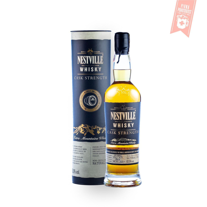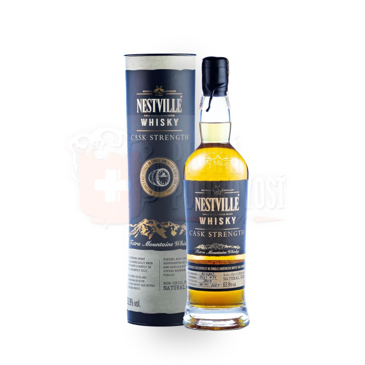 Nestville Whisky Cask Strength 63,9% je silná a výrazná whisky o sudovej sile, to znamená, že táto whisky sa pred plnením do fliaš neriedi vodou a zachováva si prirodzenú a bohatú chuť. Whisky destilát v sebe ukrýva 12 % sladu, 48 % kukurice a 40 % tritikale. Whisky destilát bol naplnený do suda o sile 65 % a do fliaš sa plní v momente, keď dosiahne 63,9% alkoholu. Táto jedinečná whisky nie je za studená filtrovaná a výsledné sfarbenie whisky je prirodzené bez pridávania farbiva.