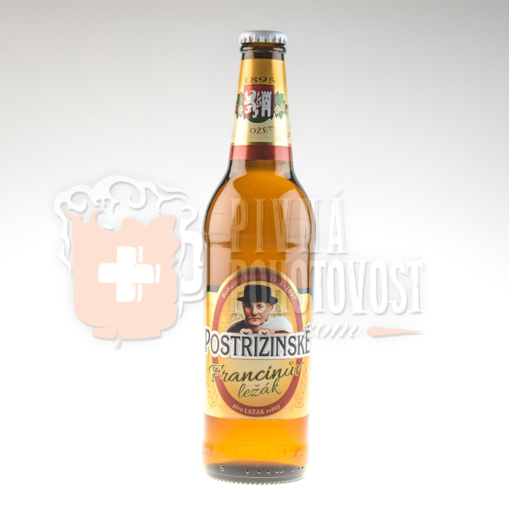 Postřižinské pivo Francinův ležák – 0,5l, výčapné svetlé pivo.Vyrobené z: pitná voda, jačmenný slad (alergén), chmeľ, chmeľové produkty. Nepasterizované pivo. Alkohol: 5,0% obj.