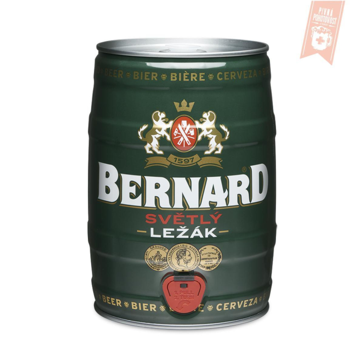 Štýlový 5L súdok piva naplnený svetlým ležiakom BERNARD v ktorom sa snúbi lahodná plnosť s vyváženou horkosťou sprevádzanou jemnou chmeľovou vôňou a hustou bohatou penou. Veľmi praktické balenie, ktoré Vás zbaví prenášania fliaš, alebo plechoviek. Súdok má výčapný ventil, takže nepotrebujete žiadne čapovacie zariadenie.