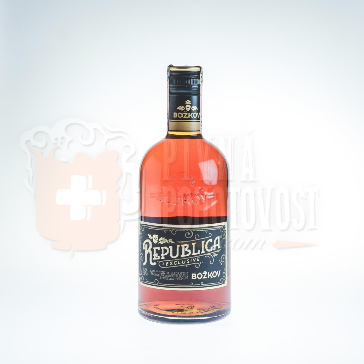 Prvá republika je obdobím noblesy a elegancie, poctivosti a hrdosti na remeslá a um, ktorými sme preslávení. Božkov Republica Exclusive je oslavou týchto prvorepublikových hodnôt. Rum Božkov Republica Exclusive je presne ako duch prvej republiky - elegantný, poctivý a hrdý.