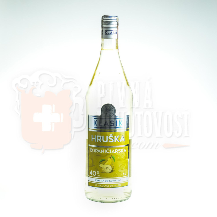 Hruška je druhou najpopulárnejšou ovocnou liehovinou na Slovensku. Je to typická slovenská liehovina s príjemnou vôňou a chuťou šťavnatej hrušky. Vyrába sa z kvalitného obilného liehu, hruškového destilátu a značkových aróm. Rokmi overená receptúra, prvotriedne suroviny a skúsení odborníci sú zárukou kvality každého produktu KLASIK. Jej silu si vychutnáte pri posedeniach s priateľmi, rodinou či kolegami. Kopaničiarska hruška sa stala víťazom fb súťaže o najpopulárnejší KLASIK produkt.