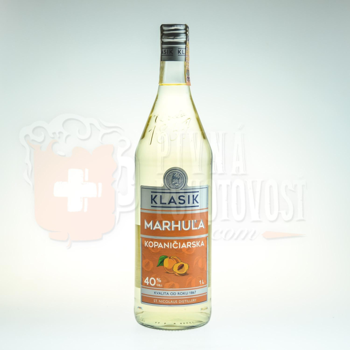Marhuľa má vysoký obsah cukru a šupku, ktorá obsahuje veľké množstvo voňavých éterických silíc, preto je tak obľúbená, hlavne v južnej časti Slovenska. Kopaničiarska marhuľa sa vyrába z kvalitného obilného liehu, marhuľového destilátu a značkových aróm. Rokmi overená receptúra, prvotriedne suroviny a skúsení odborníci sú zárukou kvality každého produktu KLASIK. Jej silu si vychutnáte pri posedeniach s priateľmi, rodinou či kolegami.