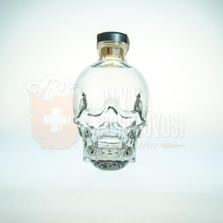 Fľaša je vyrobená v talianskych sklárňach Bruni v podobe kryštálovej lebky.