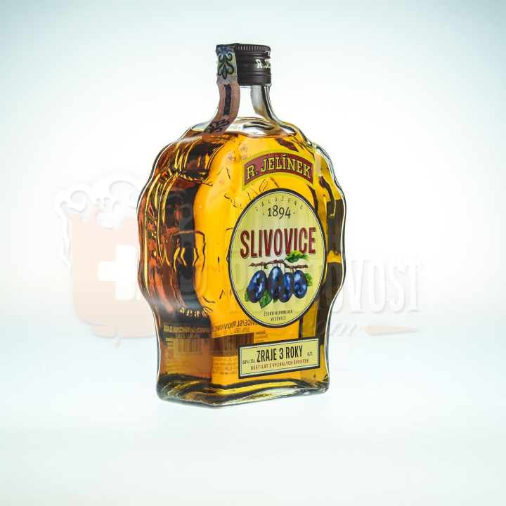 Pri zrode unikátnej zlatej slivovice stáli bratia Jelínkovi a francúzska spoločnosť Denis Mounié. Vo firme RUDOLF JELÍNEK pre vás túto tradíciu zachovávame až do dnešných dní. Rovnako ako pri bielej slivovici, výroba začína trojstupňovou destiláciou vyzretého slivkového kvasu. Vzniknutý destilát je však uložený na zrenie do drevených sudov z duba. Tri roky starnutia v týchto sudoch premenia klasickú slivovicu v ojedinelý destilát charakteristický svojou zlatistou farbou, vôňou podobnou koňaku alebo brandy a harmonicky jemnou chuťou ovocia s drevitým podtónom.