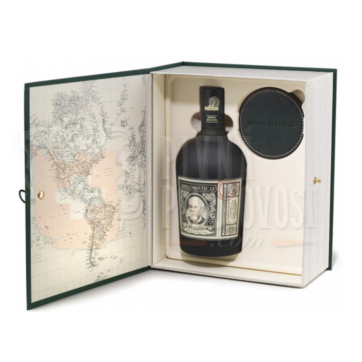 Dárkové balení v designu knihy obsahuje láhev a 4 originální kožené podtácky.