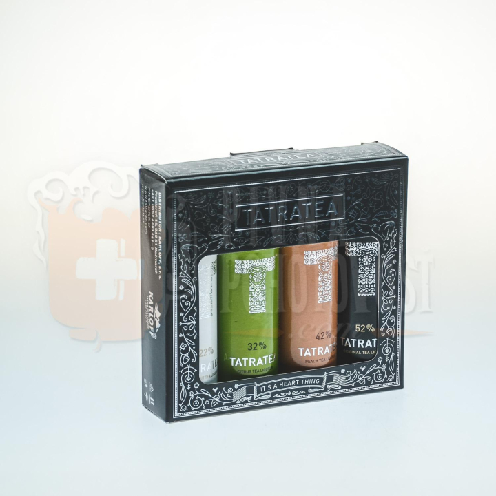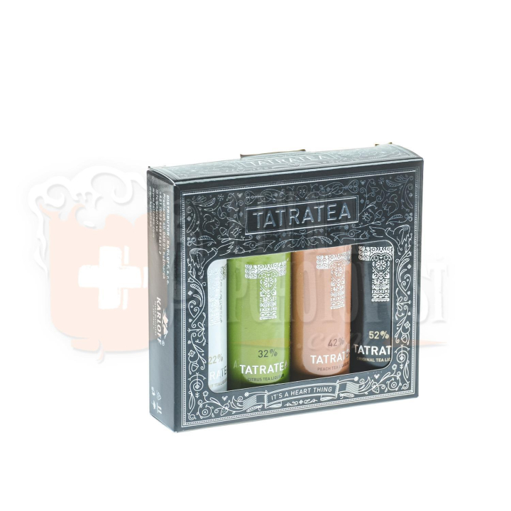 Balenie obsahuje miniatúry produktov: TATRATEA 22 % COOCNUT, TATRATEA 32 % CITRUS, TATRATEA 42 % PEACH, TATRATEA 52 % ORIGINAL