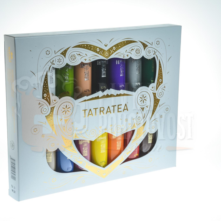 Balenie obsahuje miniatúry produktov: TATRATEA 22 % COOCNUT, TATRATEA 32 % CITRUS, TATRATEA 42 % PEACH, TATRATEA 52 % ORIGINAL, TATRATEA 62 % FOREST FRUIT, TATRATEA 72 % OUTLAW, TATRATEA 17 % MILK & TEA TATRATEA 27 % ACAI & ARÓNIA, TATRATEA 37 % HIBISCUS & RED TEA, TATRATEA 47 % FLOWER, TATRATEA 57 % ROSEHIP & SEA BUCKTHORN, TATRATEA 67 % APPLE & PEAR, TATRATEA 35 % HERBAL, TATRATEA 35 % BITTER.