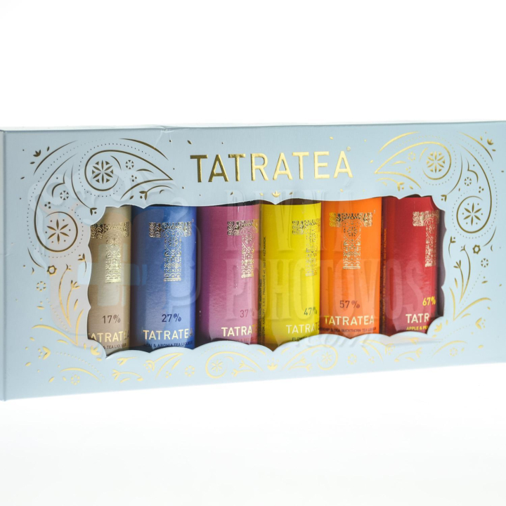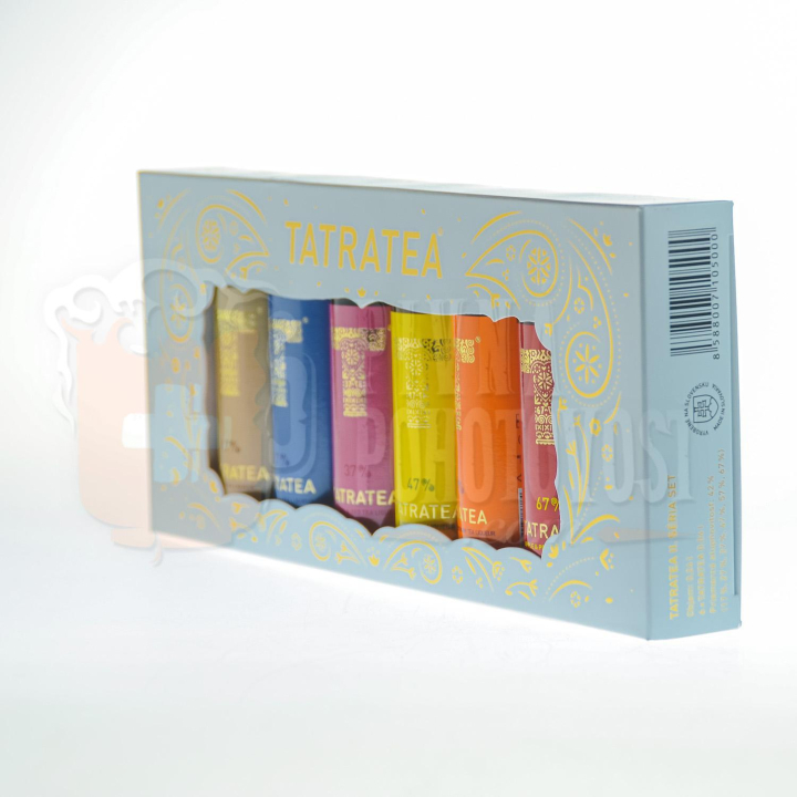 Balenie obsahuje miniatúry produktov: TATRATEA 17 % MILK & TEA TATRATEA 27 % ACAI & ARÓNIA, TATRATEA 37 % HIBISCUS & RED TEA, TATRATEA 47 % FLOWER, TATRATEA 57 % ROSEHIP & SEA BUCKTHORN, TATRATEA 67 % APPLE & PEAR.