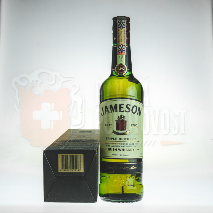 Jameson vyrába v liehovare Midleton Distillery a je základná írska zmesová whisky, klasika.Jim Murray jej dokonca udelil neuveriteľných 95 bodov!Vôňa je plná a kvetinová s hladkou sladkosťou.Marmeláda a karamel, Madeira a trochu tónov pokosenej správy.Chuť je hustá a silná s tónom záhradného ovocia, čerstvého i vareného, s trochou vanilkového krému.Záver je stredne dlhý s korením a medom.Balenie s pohárikom.