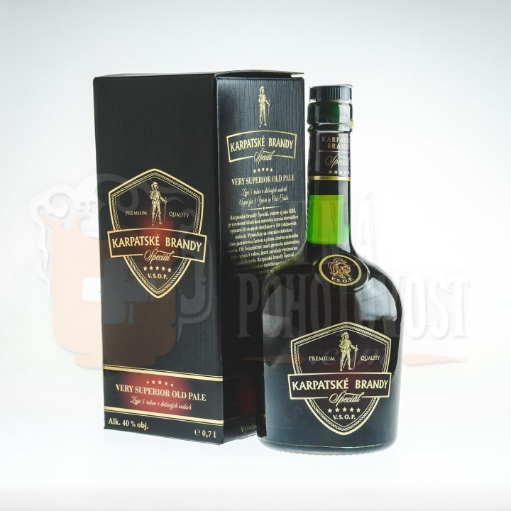 Zažite vysokokvalitnú tradíciu výroby brandy, ktorá sa v Karpatoch pestuje už desaťročia. Karpatské Brandy Špeciál je špičkový destilát vyrobený klasickou metódou zrenia minimálne 5 rokov v 300-litrových dubových sudoch.
