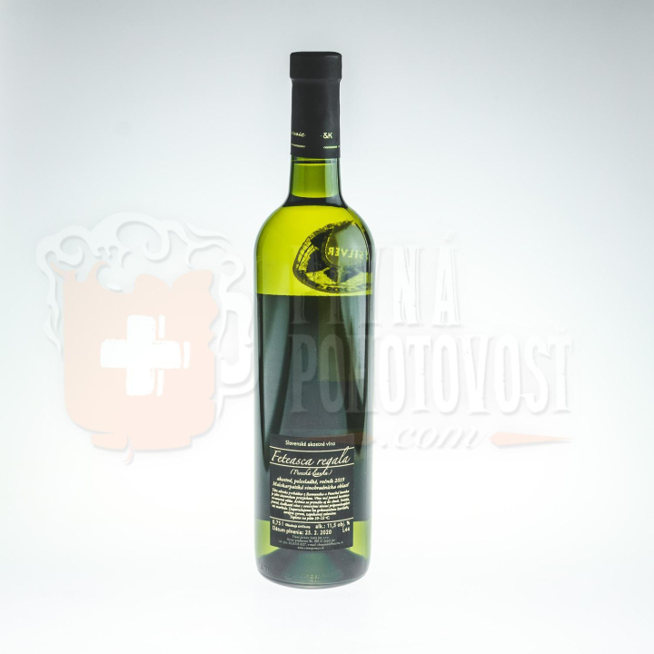Alkohol %: 12% Balenie: Bez obalu Cukornatosť: Polosladké Objem: 0,75 Oblasť: Malokarpatská Odroda: Feteasca Regala (Pesecká leánka) Ročník: 2019 Krajina: Slovensko Farba: Biele