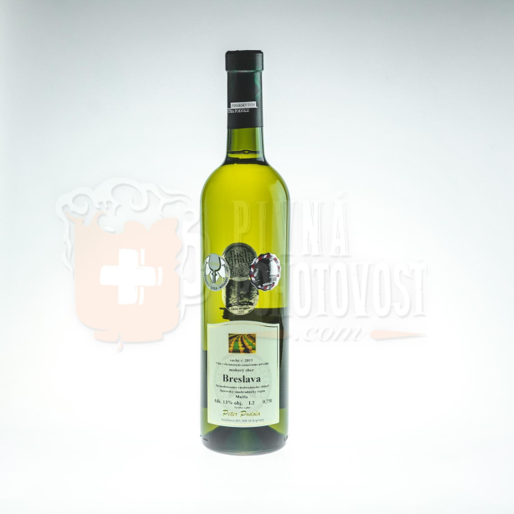 Alkohol %: 13% Balenie: Bez obalu Cukornatosť: Suché Objem: 0,75 Oblasť: Južnoslovenská Odroda: breslava Ročník: 2019 Krajina: Slovensko Farba: Biele
